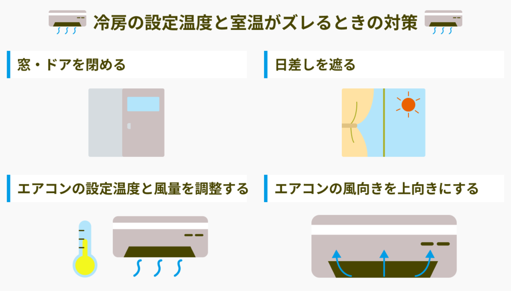 冷房の設定温度と室温がズレる場合、以下のような対策が考えられます。