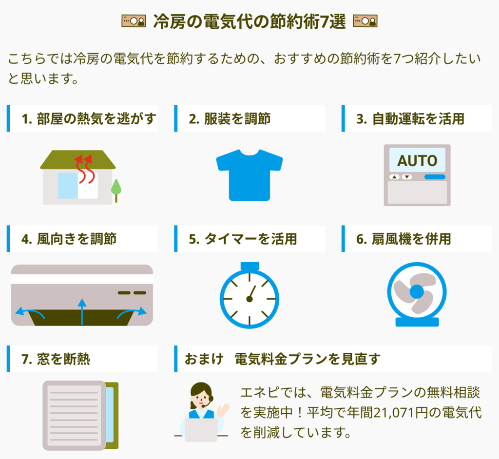 こちらでは冷房の電気代を節約するための、おすすめの節約術を7つ紹介したいと思います。