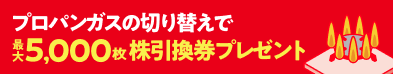 エネピに登録した日からプロパンガス切り替え日までの期間にプラス会員であった場合、株引換券5,000枚を付与いたします。